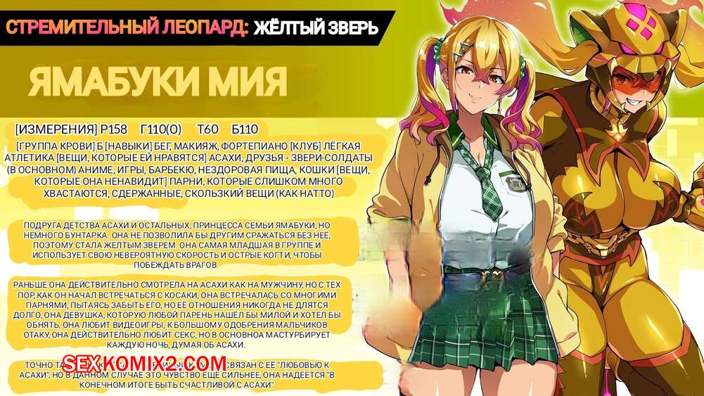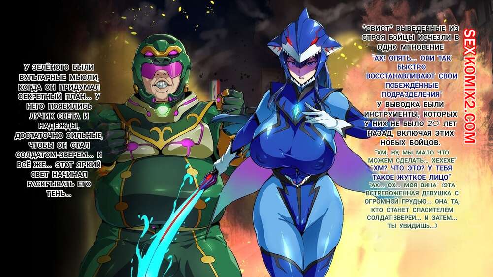 Порно комикс Звериный Отряд СолдатовЗверей. Juukon Sentai Juusoldier. Takeda Hiromitsu Парни просто без ума от горячих сисястых красоток с шикарными телами. Они раздевают девушек и дают им отсосать свой большой хуй, после чего хорошенько их трахают, получая огромное удовольствие.